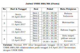 JADWAL UNBK SMP, SMA / SMK TAHUN 2017
