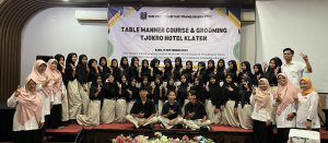 PRAMBANAN – SMK Muhammadiyah 1 Prambanan-Klaten kembali menghadirkan kegiatan menarik bagi siswa-siswinya pada Rabu (10/9), yaitu “Table Manner Course and Grooming”. Kegiatan ini merupakan bagian dari program outing class yang dikhususkan untuk siswa-siswi kelas X (sepuluh) Program Keahlian Manajemen Perkantoran dan Layanan Bisnis (MPLB). Nuansa pelaksanaan kegiatan ini terasa sangat profesional, sebab “berani menggandeng” Tjokro Hotel Klaten sebagai mitra kegiatan.